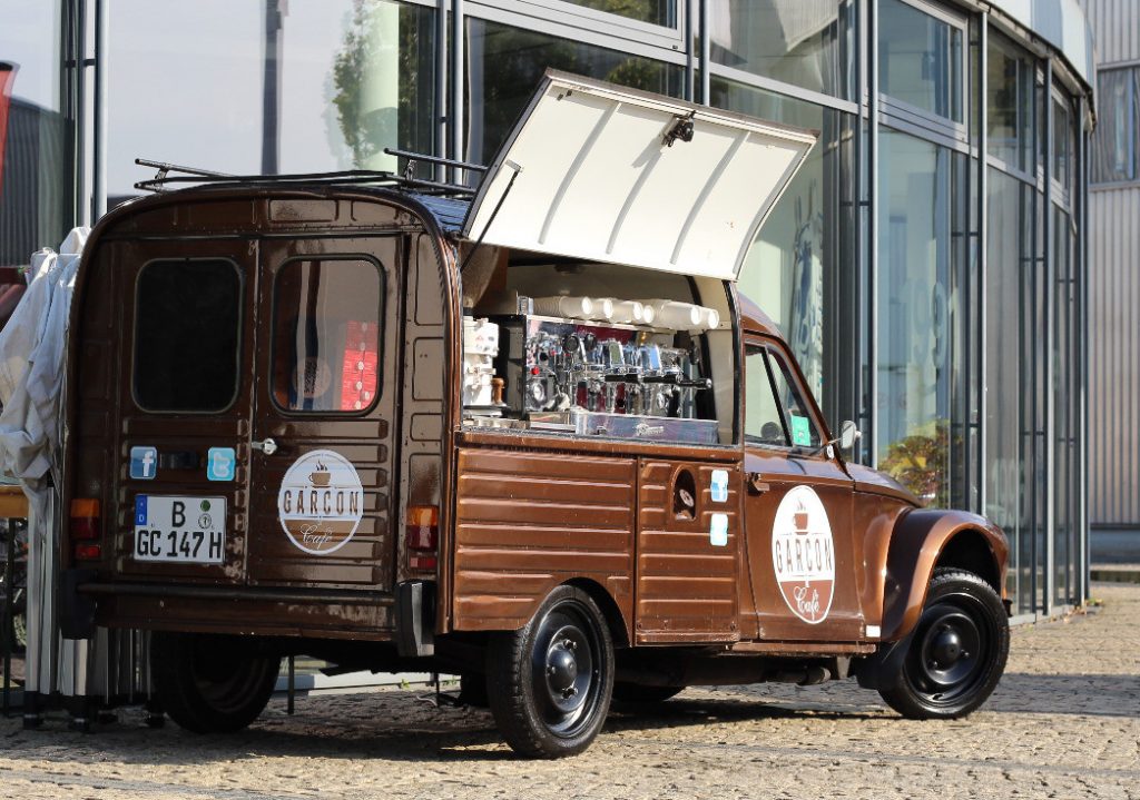 Das ganze französische Flair kommt jedoch erst dann zum Tragen, wenn der Kaffee im eigens eingerichteten “FLAIRLAB”-Oldtimer. Dabei handelt es sich um einen alten Citroën “Acadiane”. Sollten Ihnen einmal nur begrenzte Räumlichkeiten zur Verfügung stehen, ist unsere Bar somit die perfekte Alternative zum Oldtimer.